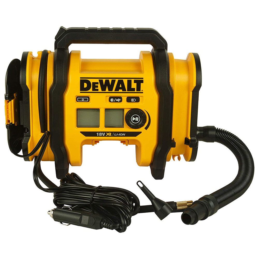 เครื่องสูบลมไร้สาย จากแบรนด์ DEWALT เครื่องเติมลมและเครื่องเป่าลมประสิทธิภาพสูงขนาดกะทัดรัด น้ำหนักเบา พร้อมไฟ LED ช่วยให้ใช้งานได้ในเวลากลางคืนหรือในสภาพแสงน้อย เข้ากันได้กับแบตเตอรี่เครื่องมือไฟฟ้า DeWalt 18v สำหรับการใช้งานแบบไร้สาย เติมลมได้อย่างรวดเร็ว สูงสุด 0.35 ลิตร/นาที ที่ 6.2 บาร์, 0.6 ลิตร/นาทีที่ 2 บาร์ สะดวกต่อการใช้งานและการจัดเก็บ/เคลื่อนย้าย