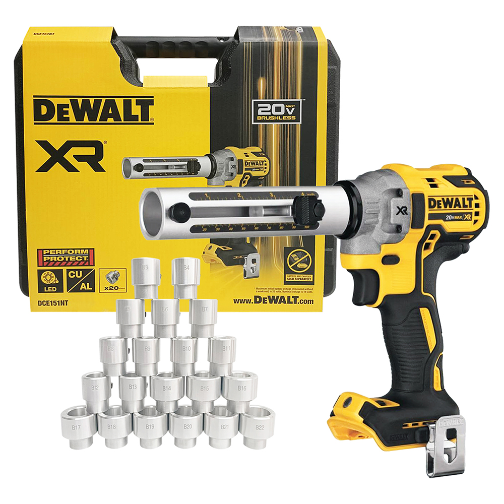 DEWALT เครื่องปลอกสายไฟ เฉพาะตัวเครื่องพร้อมหัว 20 ขนาด รุ่น DCE151NT-B1